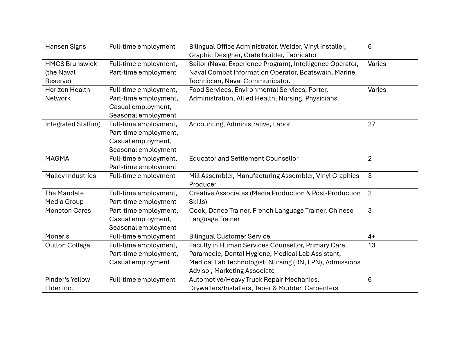Important note: The information below was provided by the employers attending the event on November 27th, and is subject to change as positions are filled and recruitment needs vary.